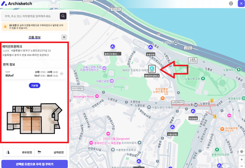 아키스케치에서 우리집 인테리어나 및 이사 예정이시라면 해당 집의 도면을 바로 조회해서 가구 배치 직접 해보세요