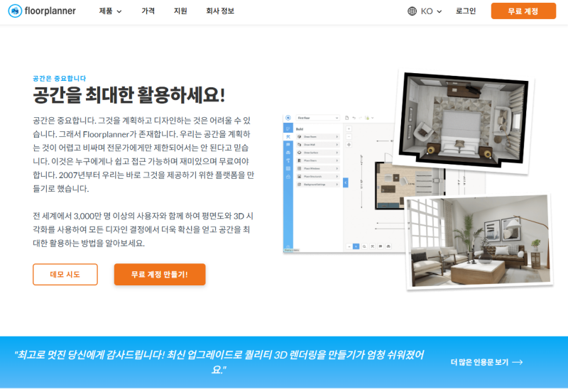| 디자인 자유도 | 플로어플래너 | 커스터마이징 옵션 다양 |
