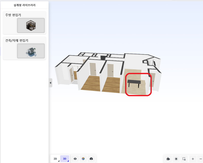 우리집 도면이 조회되면 에디터 화면으로 이동이 되고, 왼쪽 상태바에서 원하는 라이브러리바에서 선택하시면 됩니다.