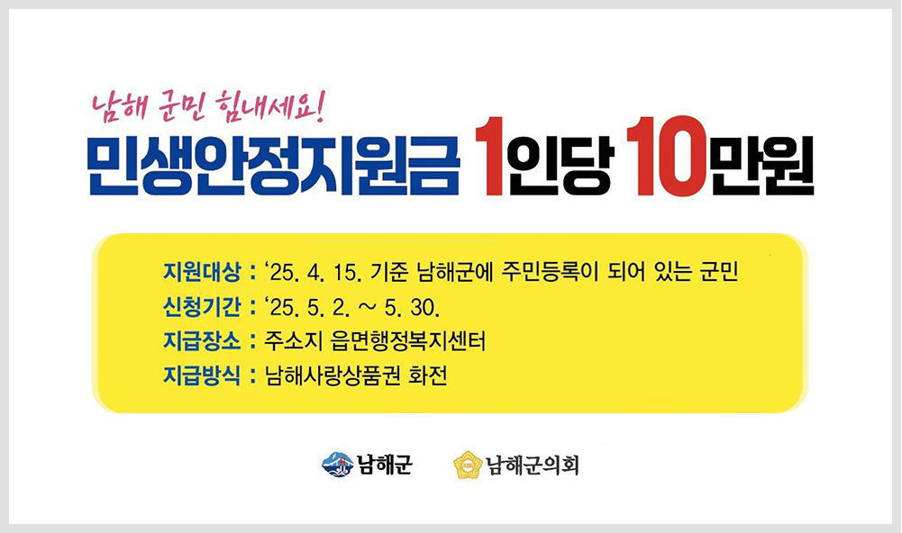 남해군은 지역경제 침체 극복과 군민 생활 안정을 위해 2025년 5월 한 달간
