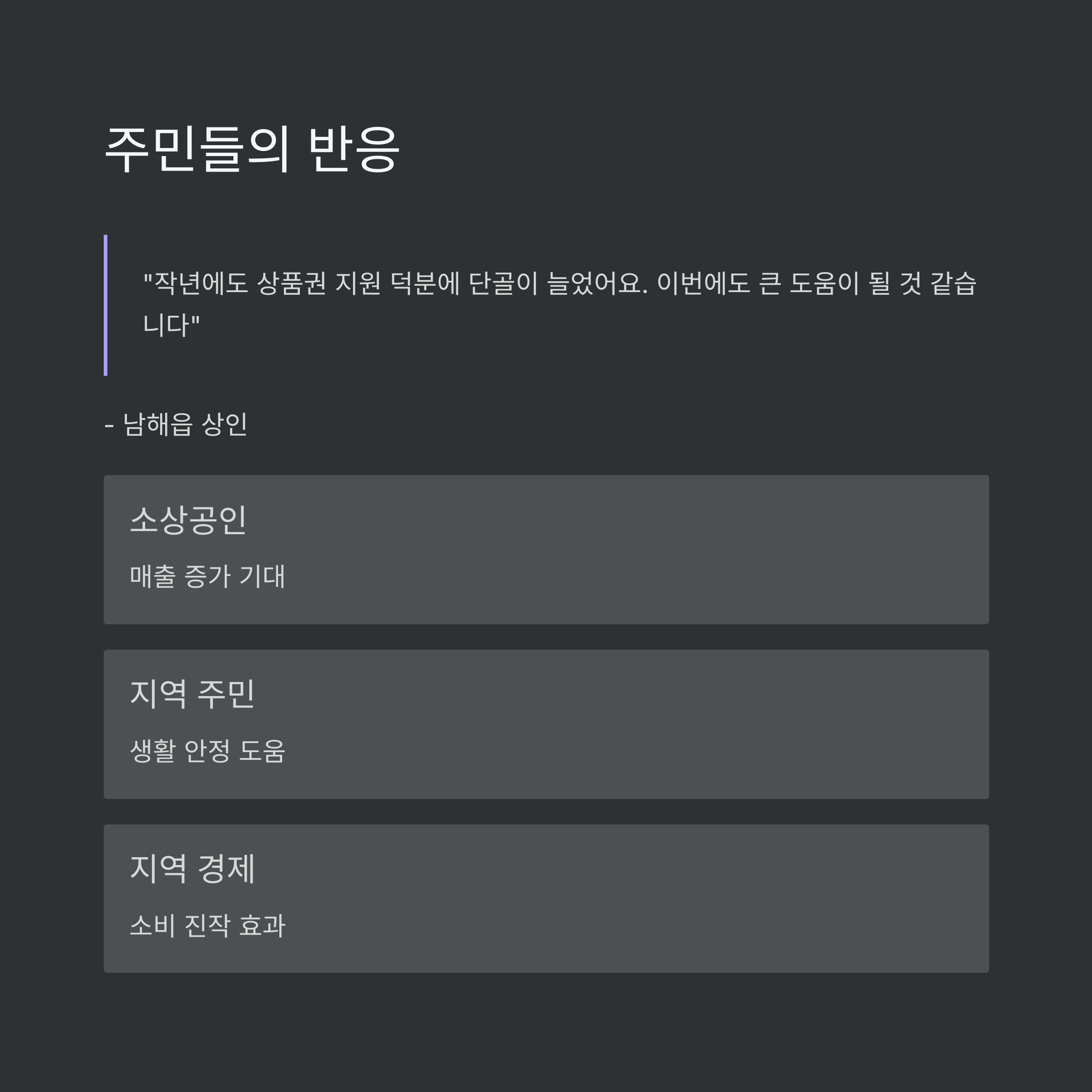 실제 소상공인 매출 증가, 지역 소비 진작 등의 효과가 기대됩니다.