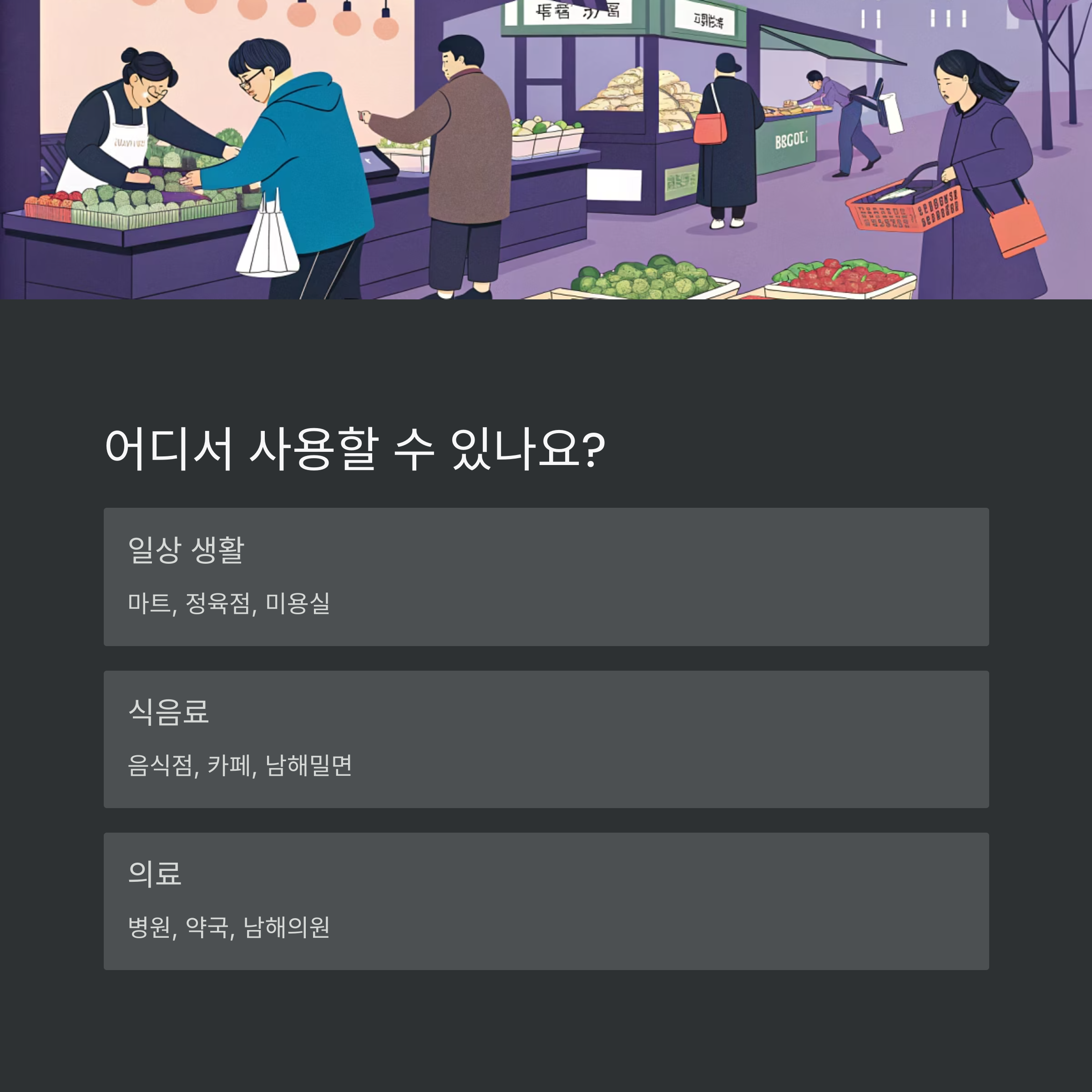 이 상품권은 남해군 내 1,911개 가맹점에서 사용할 수 있습니다.