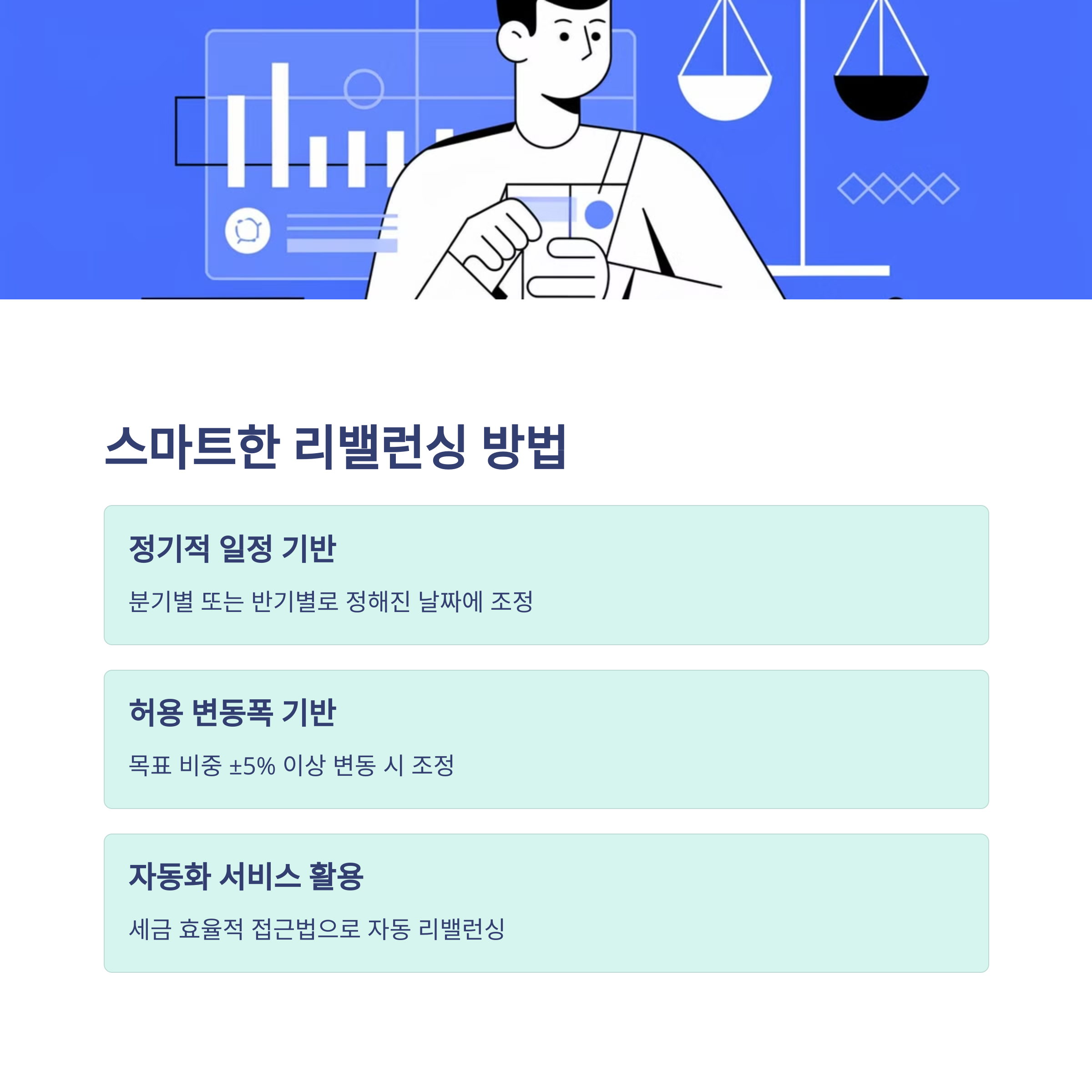 | 일정 주기로 체크해야 효과적 | 다양한 자산군의 균형 유지 | 시간과 계획이 수익률을 만든다 |