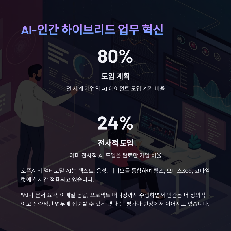 오픈AI의 멀티모달 AI는 텍스트, 음성, 비디오를 통합하며 팀즈, 오피스365, 코파일럿에 실시간 적용되고 있습니다.
