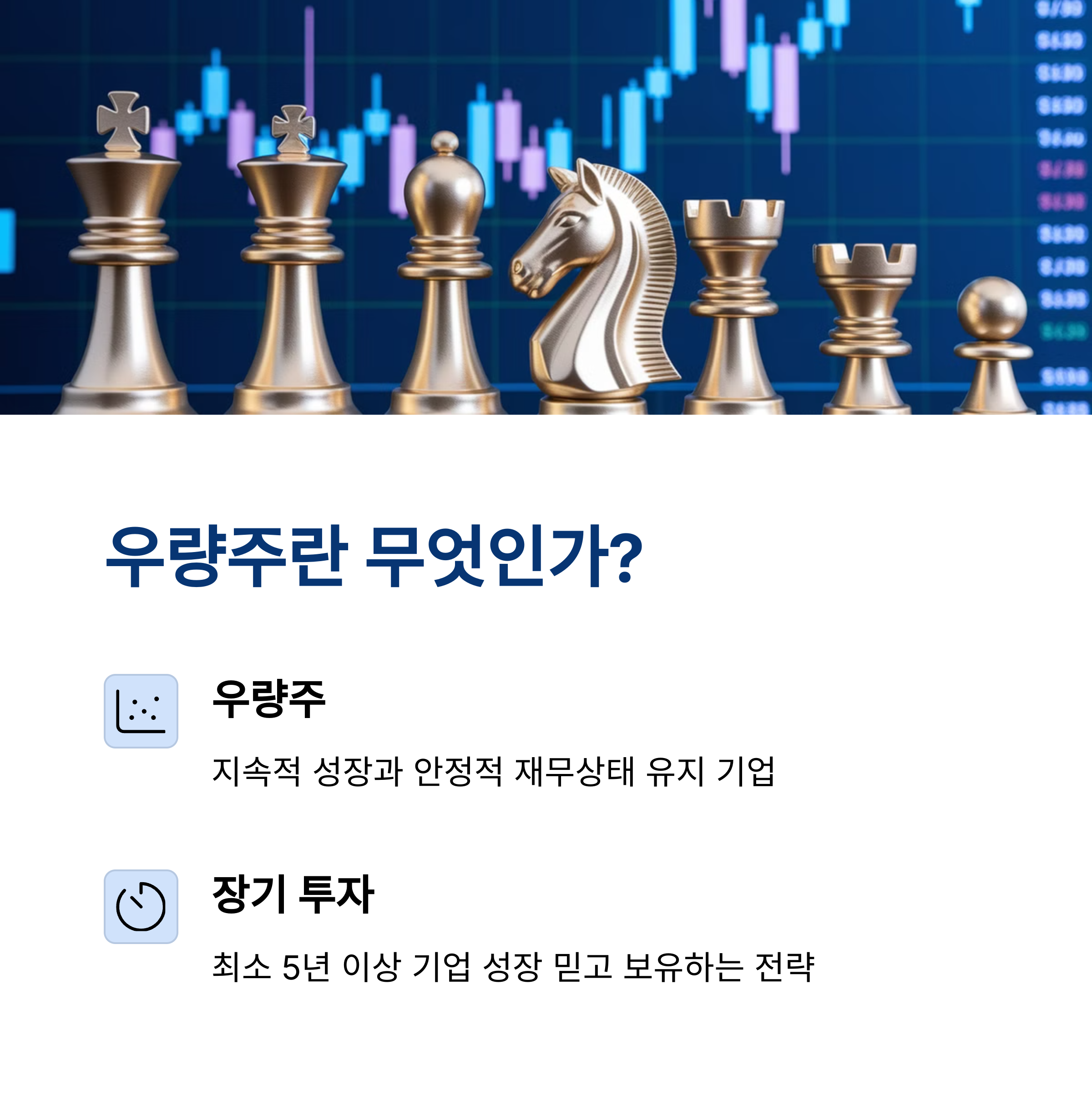 | 우량주란? | 지속적으로 성장하며 안정적인 재무 상태를 유지하는 기업 |
