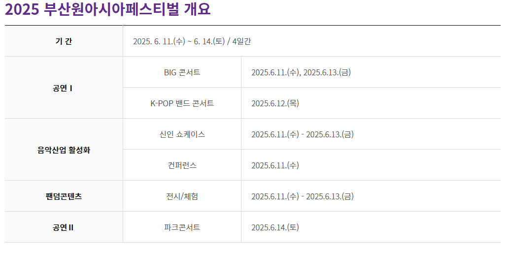 부산원아시아페스티벌 티켓팅 총정리와 라인업 안내(2025)