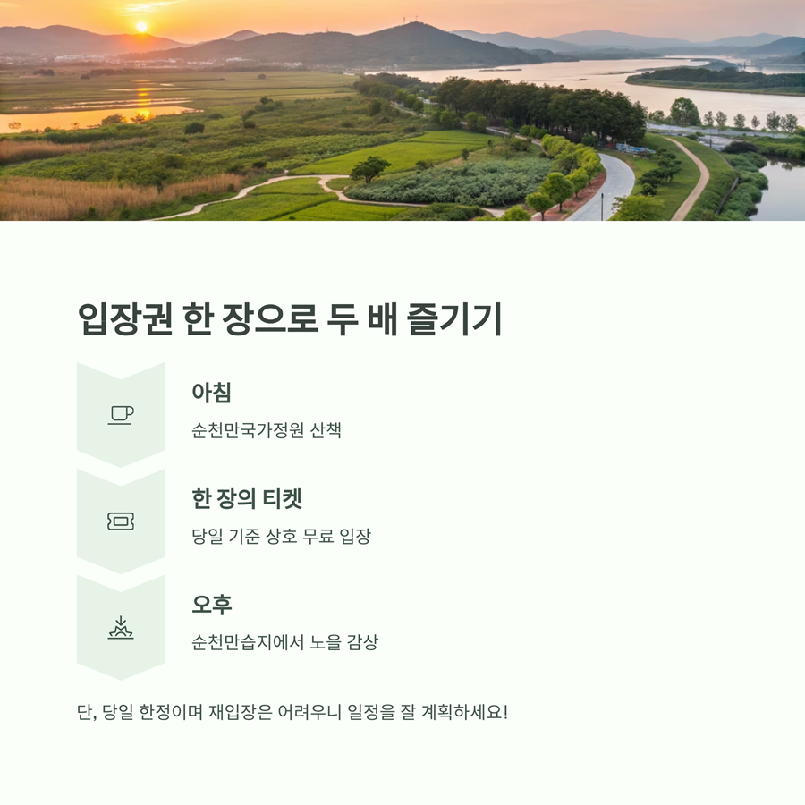 - 순천만국가정원과 연계 가능: 한 곳 입장권 구매 시 다른 곳 무료 관람 가능
