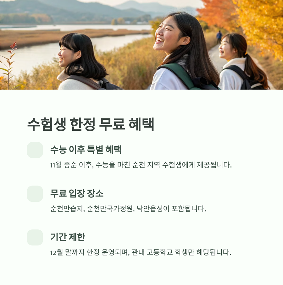 대학수학능력시험을 마친 순천 지역 수험생에게는 특별한 혜택이 주어집니다.