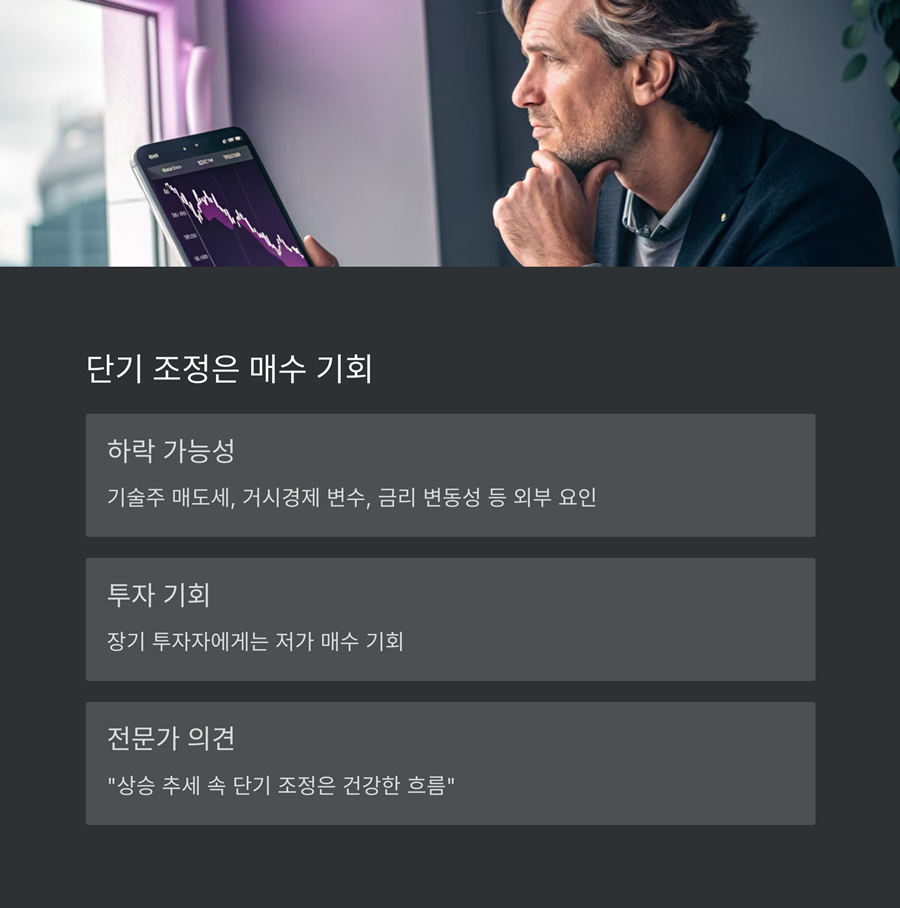 "상승 추세 속 단기 조정은 건강한 흐름"이라는 분석이 설득력을 얻고 있습니다.