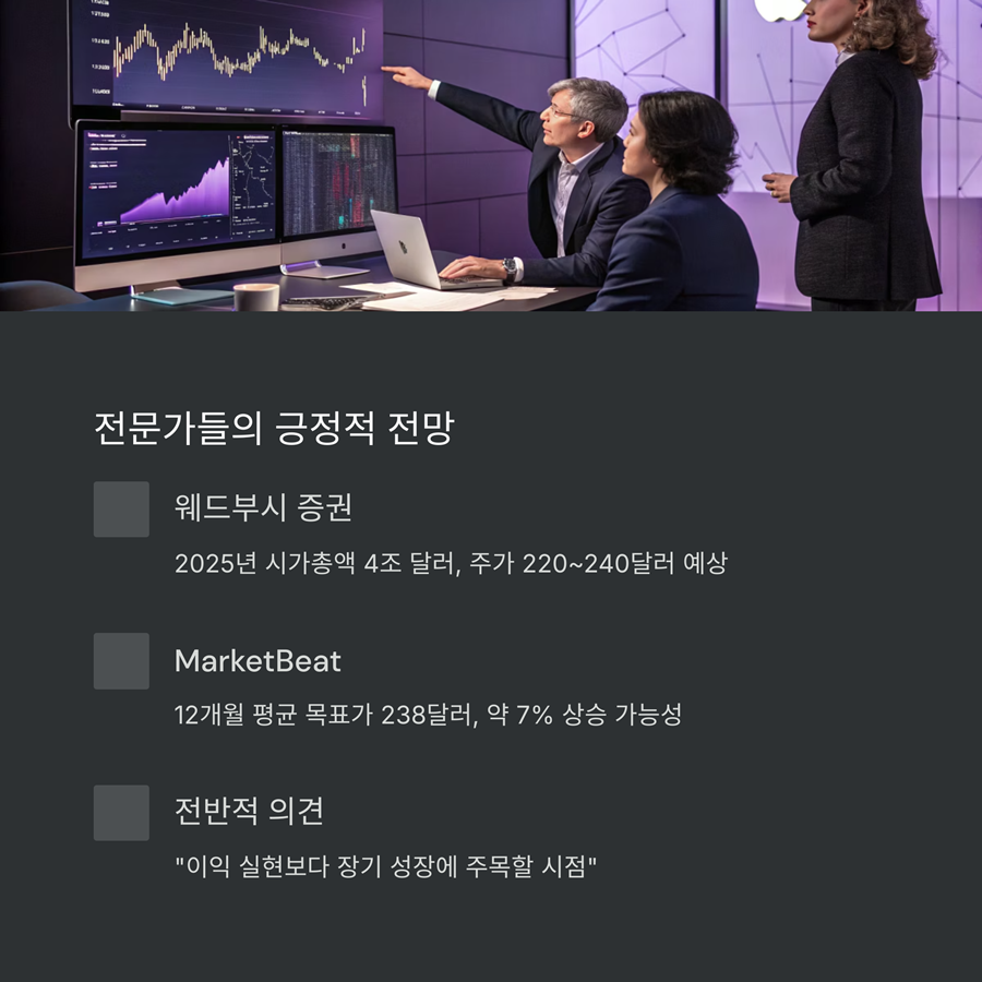 | 주가 목표 | 220~240달러 예상 | 웨드부시, MarketBeat |