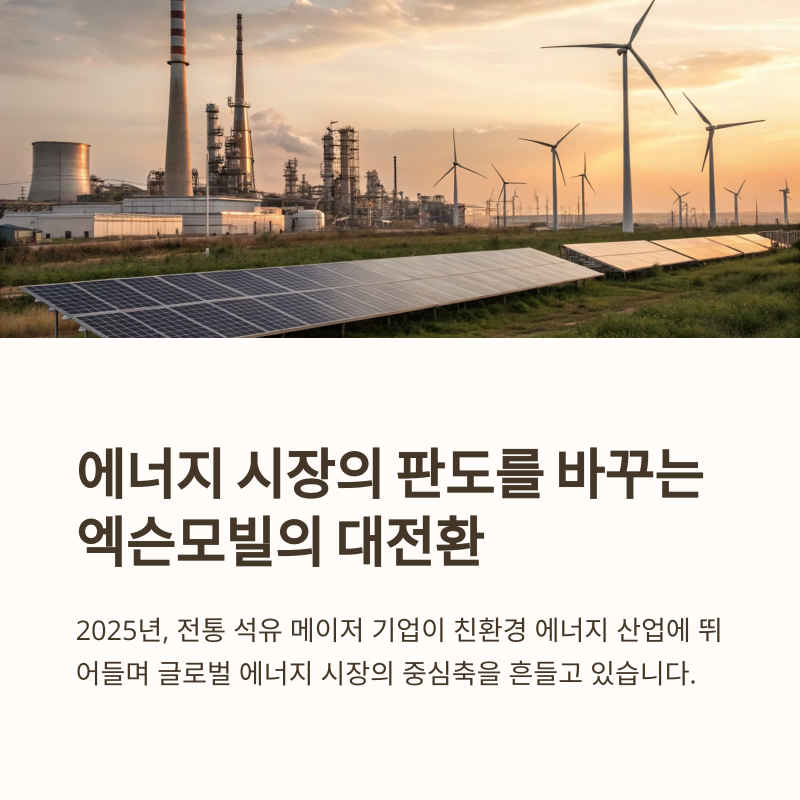 2025년, 전통 석유 메이저 엑슨모빌이 친환경 에너지 산업에 전격적으로 뛰어들며 글로벌 에너지 시장의 중심축을 흔들고 있습니다