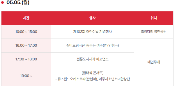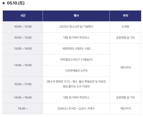 - 기간: 2025년 5월 1일(목) ~ 5월 11일(일)