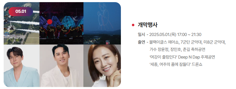 - 5월 1일(목): 개막식 및 장윤정, 장민호 공연