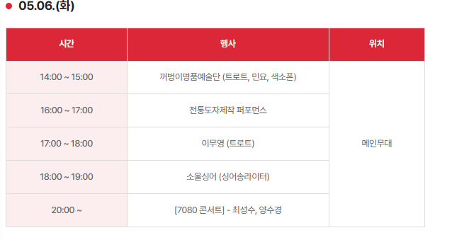 자세한 축제일정 5월 1일(목) ~ 5월 11일(일)은 홈페이지에서 상세 확인하세요!