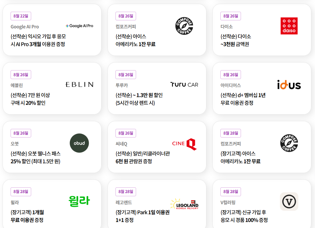 제휴사는 분기별로 변경되며, 유플러스 멤버십 앱에서 항상 최신 정보를 확인하는 것이 필요합니다.