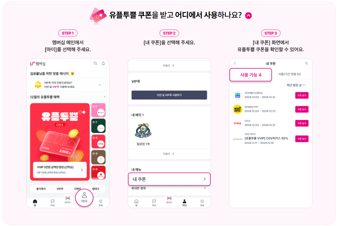 | 발급 수단 | LG유플러스 멤버십 앱 내 이벤트 페이지 |