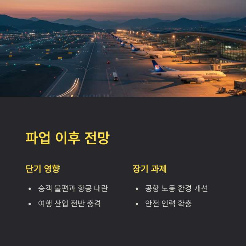 이번 사태는 단기적으로는 승객 불편과 항공 대란, 장기적으로는 공항 노동 환경 개선과 안전 인력 확충이라는 과제를 동시에 남깁니다. 파업이 장기화될 경우 항공 여행 산업 전반에도 충격이 불가피합니다.