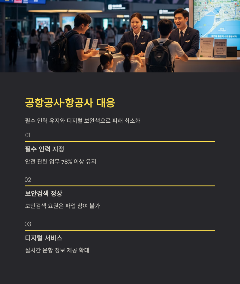 - 대체 인력 투입, 디지털 안내 서비스 강화, 실시간 운항 정보 제공 확대