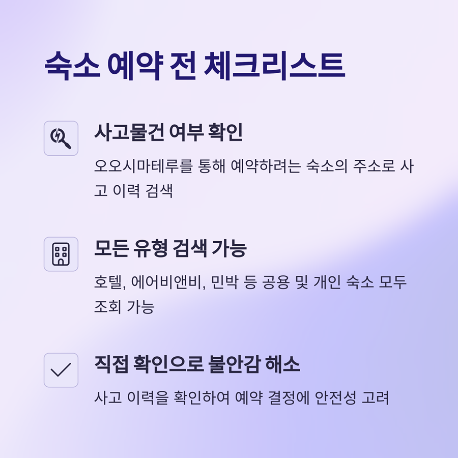 특히 숙소가 리모델링 되었거나 이름이 바뀐 경우에도 사건 이력이 남아 있을 수 있습니다.