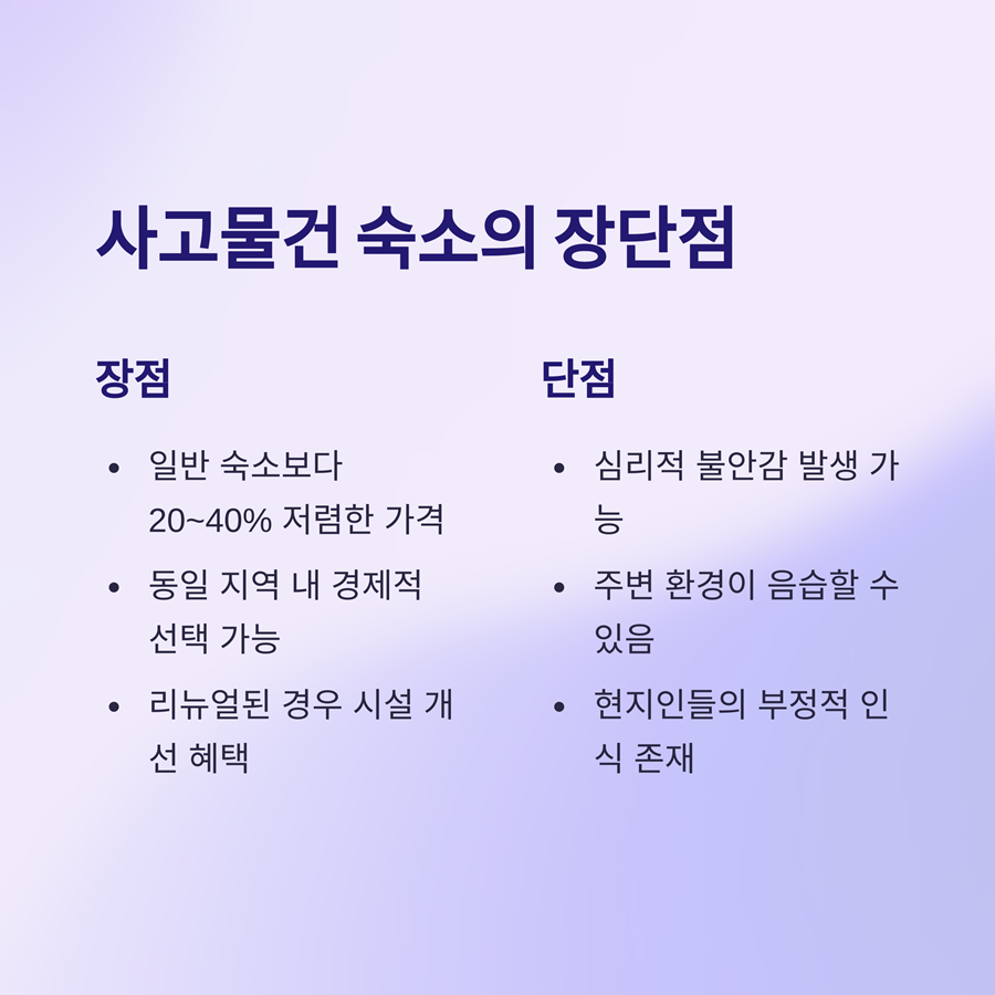 사고물건 숙소의 장단점 - 저렴한 가격과 감수해야 할 위험
