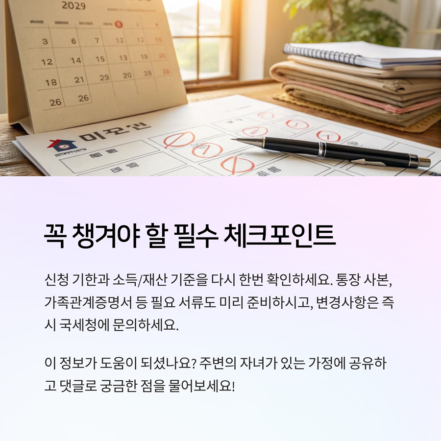 첫째, 자녀 연령과 소득 기준을 철저히 확인하세요.