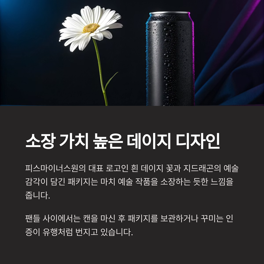 청량한 맛과 고급스러운 패키지로 팬덤과 MZ세대 모두를 사로잡고 있습니다.