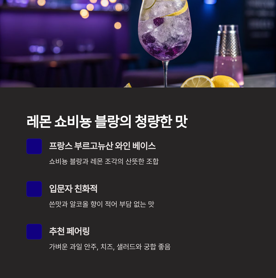 | 주요 성분 | 부르고뉴산 쇼비뇽 블랑, 레몬 조각 |