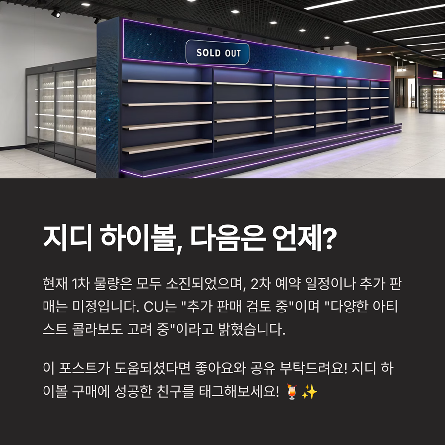 이에 따라 향후 지디 하이볼의 다양한 버전 혹은 굿즈 연계 상품이