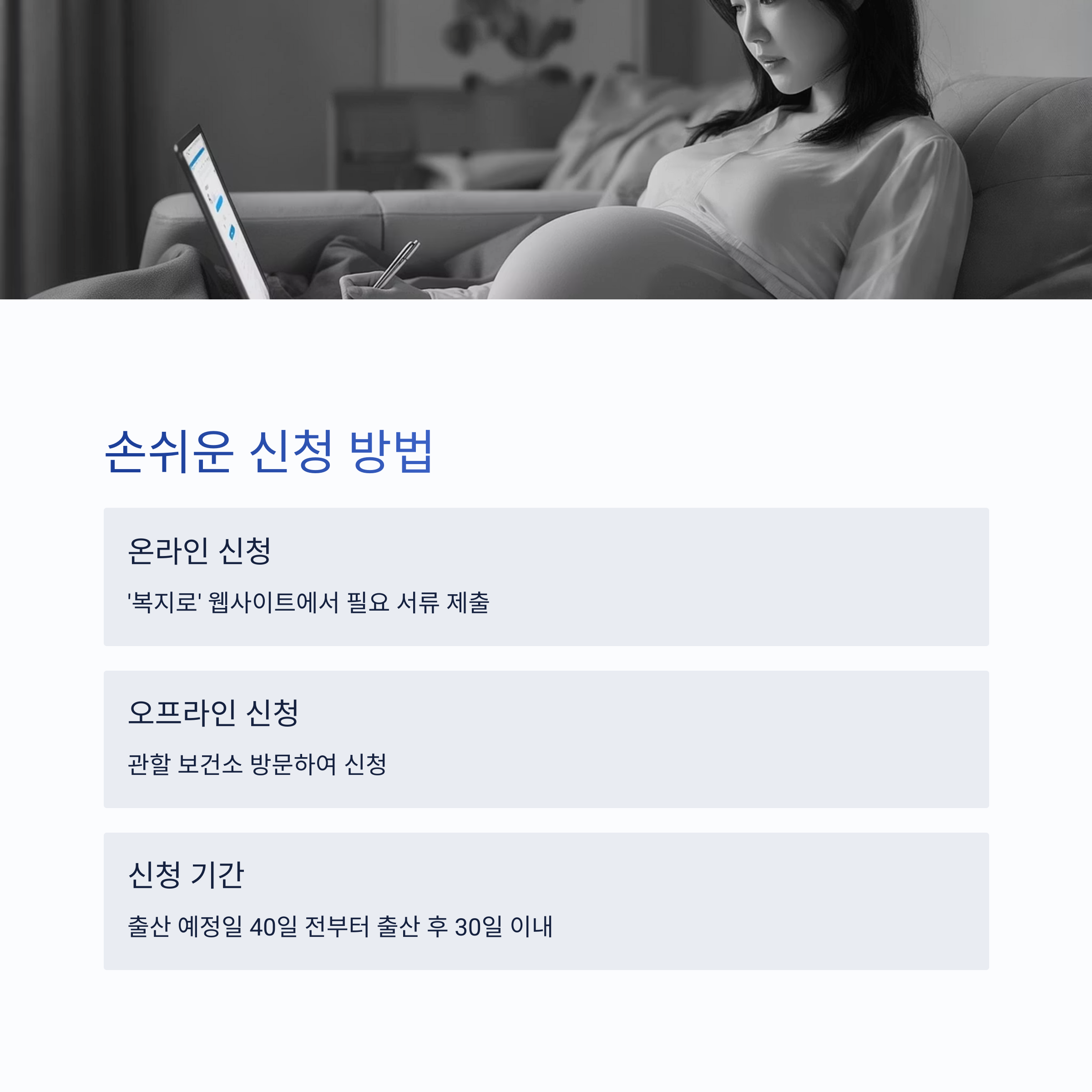 신청 기간은 출산 예정일 40일 전부터 출산 후 60일 이내까지 가능하여 출산가정의 부담을 덜어줍니다.