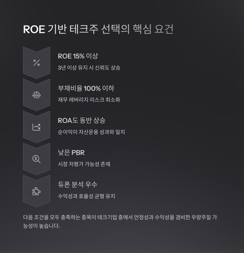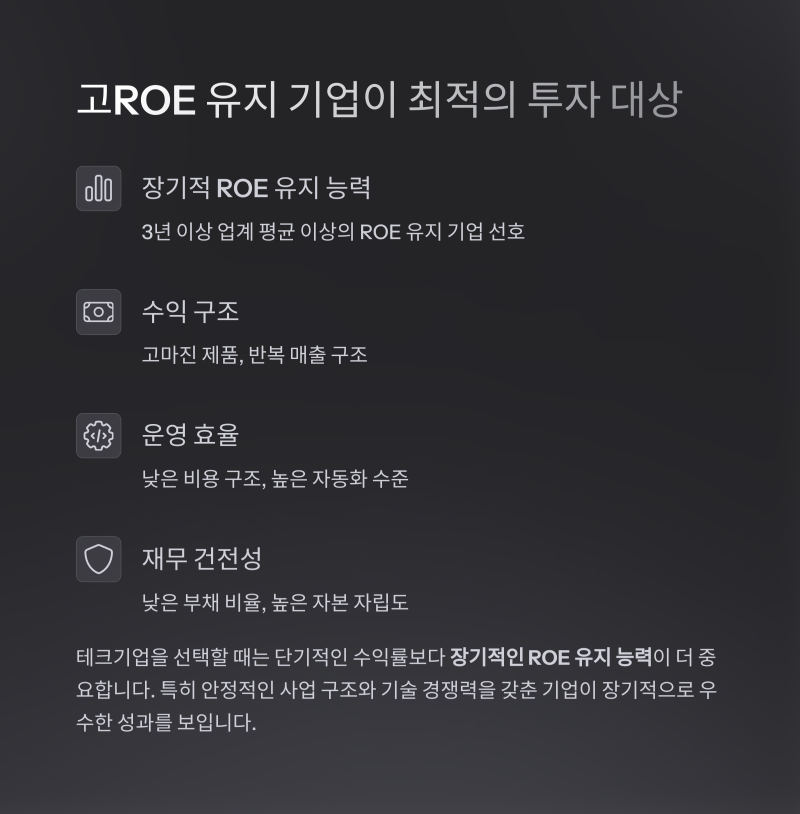 테크기업을 선택할 때는 단기적인 수익률보다 장기적인 ROE 유지 능력이 더 중요합니다.