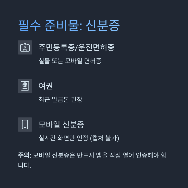 핵심 준비물은 단 하나, '신분증'입니다.