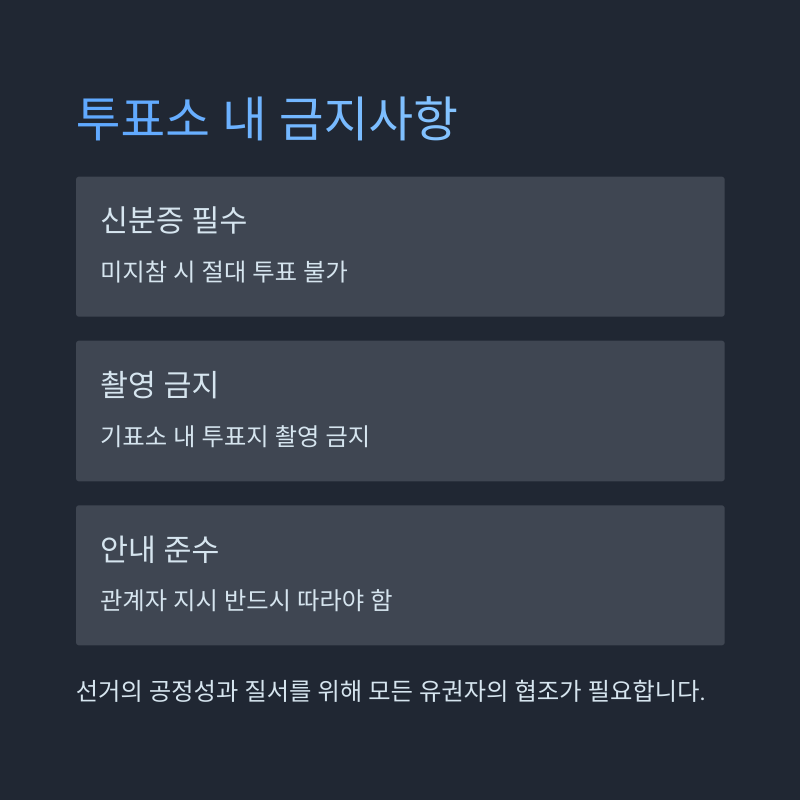 - 기표소 내에서 투표지 촬영 금지 (공직선거법 위반 시 처벌)