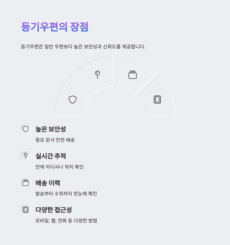 등기우편은 발송에서 수취까지의 전 과정을 추적할 수 있어 중요 문서나 소포를 보낼 때 필수적인 서비스입니다.