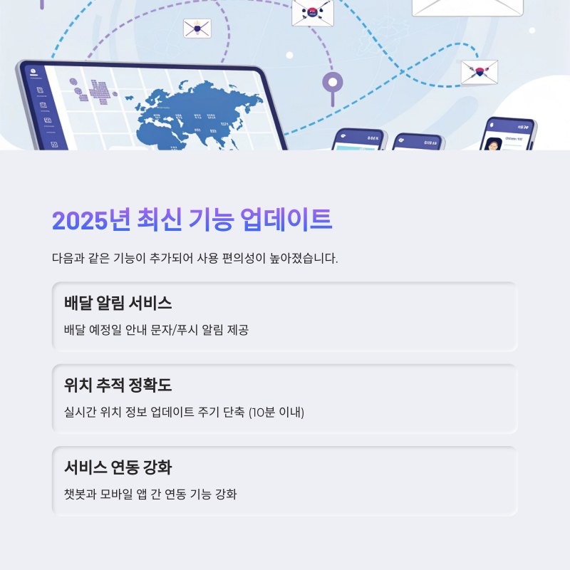 발송 시각, 현재 위치, 도착 예정일, 배달 완료 여부까지 확인할 수 있습니다.