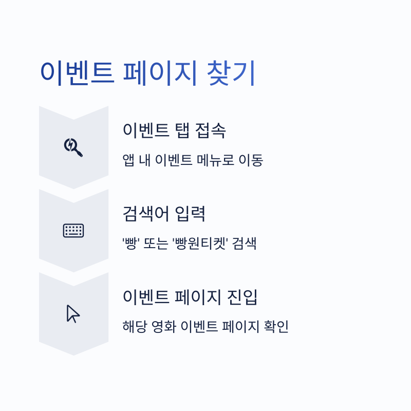 이벤트가 열리는 시점에 앱 내 이벤트 탭에서 ‘빵’ 또는 ‘빵원티켓’으로 검색해 해당 영화의 이벤트 페이지로 진입하세요.