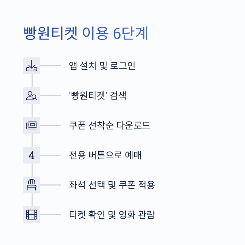 영화 선택 → 상영관 및 시간 선택 → 좌석 선택 후 쿠폰 적용