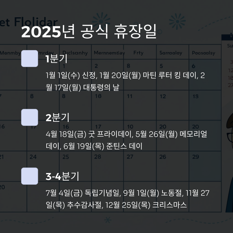 2025년 미국 주식시장(뉴욕증권거래소, 나스닥)은 연방 공휴일을 기준으로 휴장 일정이 정해집니다.