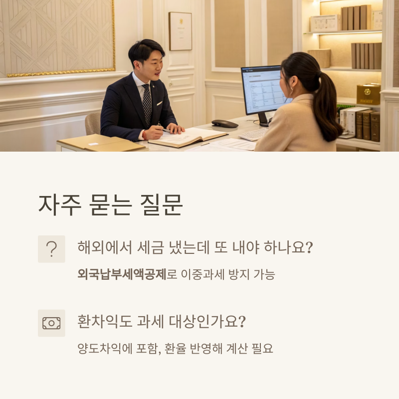 → "해외주식 환차익은 양도차익에 포함되므로, 환율까지 반영해 실현 이익을 계산해야 합니다."