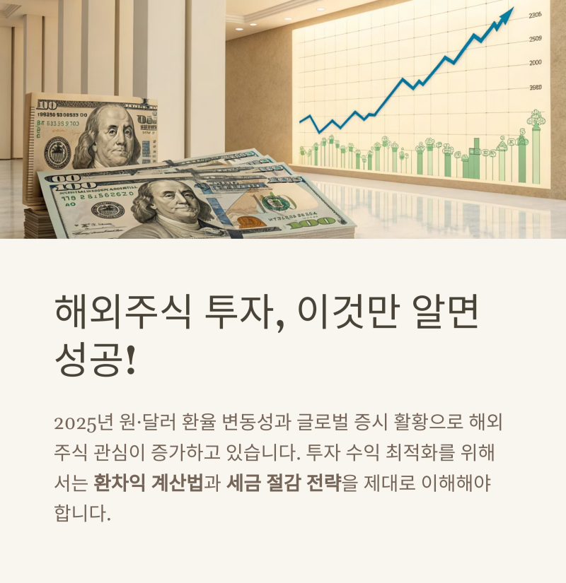 하지만 투자 수익을 최적화하려면 단순한 매수·매도 타이밍 외에도 환차익 계산법과 세금 절감 전략을 제대로 이해하는 것이 필수입니다.
