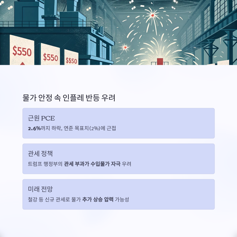 2025년 4월 발표된 철강 등 품목에 대한 신규 관세는 향후 물가에 추가적인 상승 압력을 가할 가능성이 있습니다.