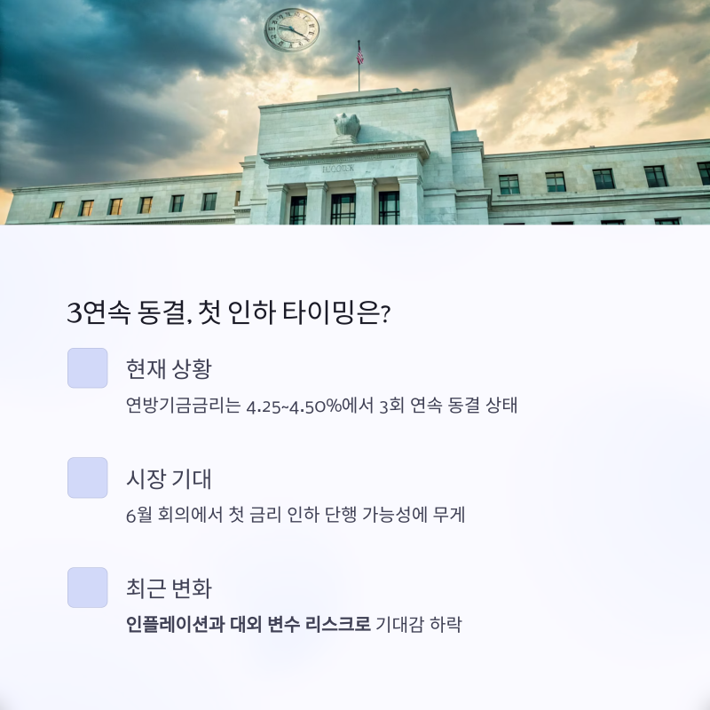 3연속 동결 후, 금리 인하 첫 타이밍은 지금일까?