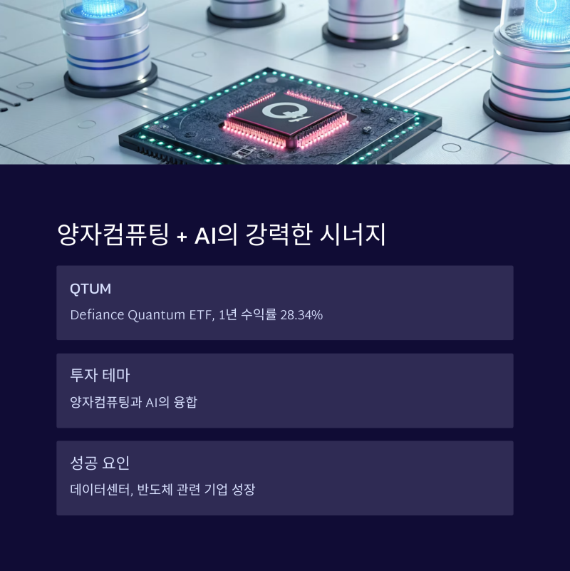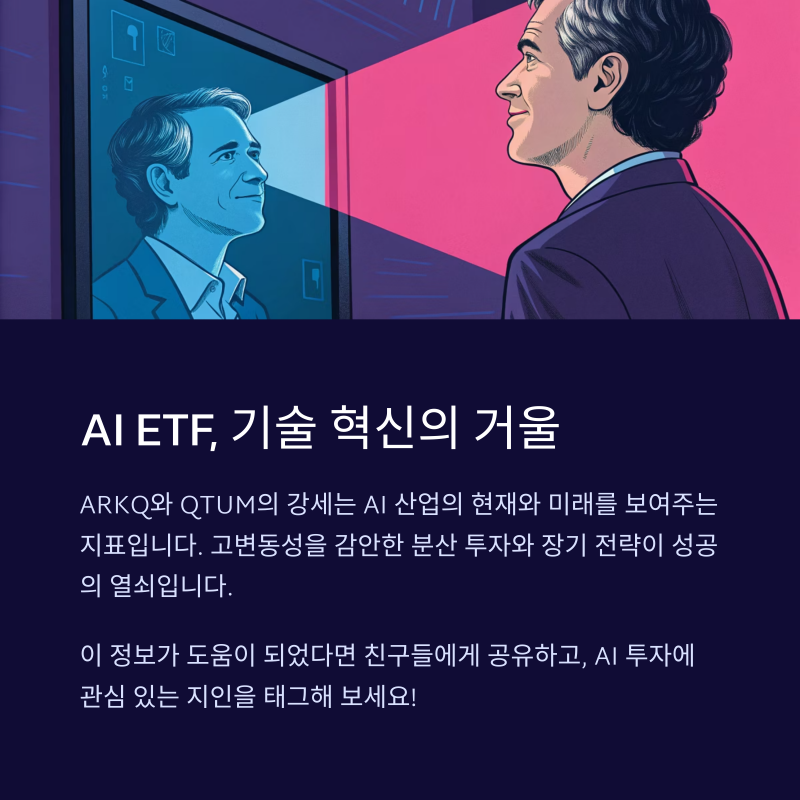 ARKQ와 QTUM의 강세는 AI 산업의 현재와 미래를 보여주는 지표이며, AI 인프라 관련 ETF의 등장은 테마 확장의 신호탄으로 해석할 수 있습니다.
