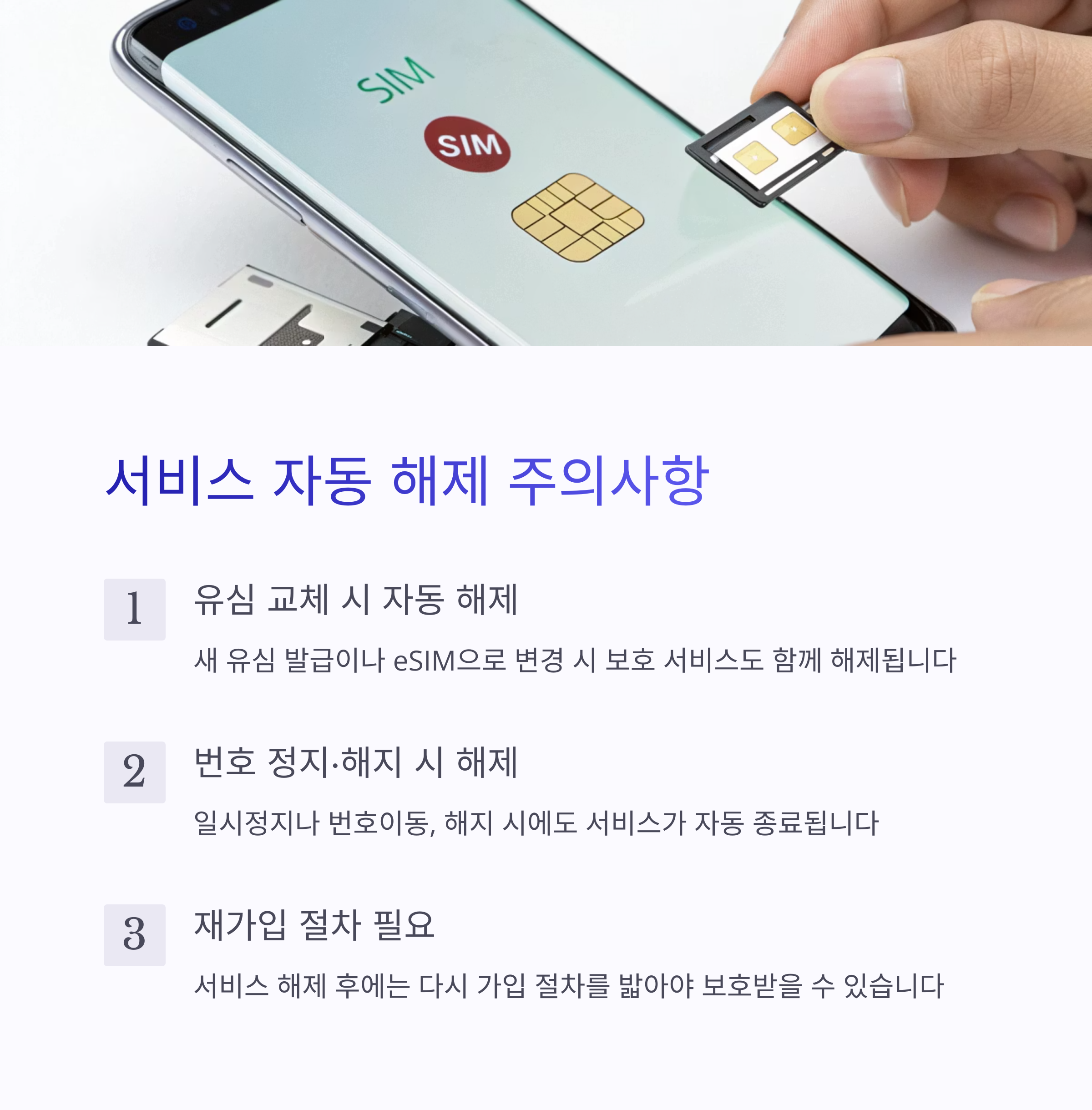 "보호를 유지하려면, 유심 변경 후 바로 재가입이 필수입니다" ❗