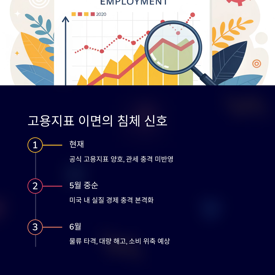 공식 고용지표는 양호했지만, 이는 관세의 충격이 아직 반영되지 않았기 때문이라는 시각도 존재합니다.