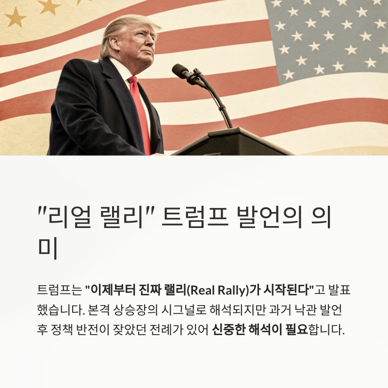 이는 단순 회복장을 넘어선 본격 상승장의 시그널로 해석되지만 과거에도 낙관 발언 뒤 정책 반전이 잦았던 전례가 있어 신중한 해석이 필요합니다.
