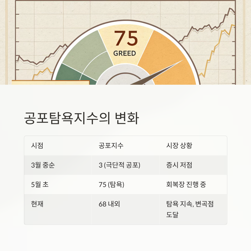 | 현재 | 68 내외 | 탐욕 지속, 변곡점 도달 |