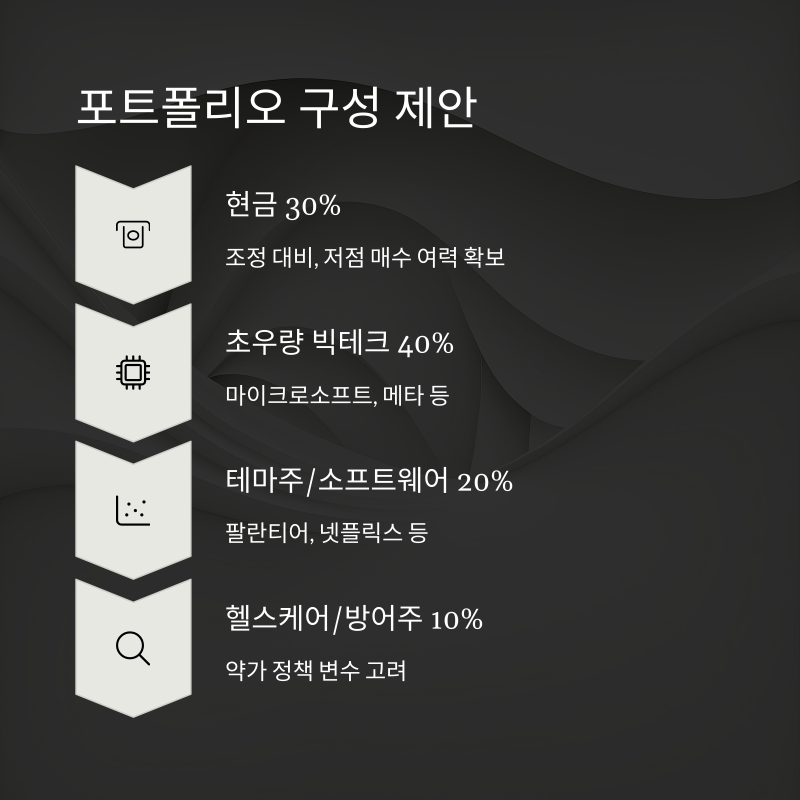 | 초우량 빅테크 | 40% | 마이크로소프트, 메타 등 |