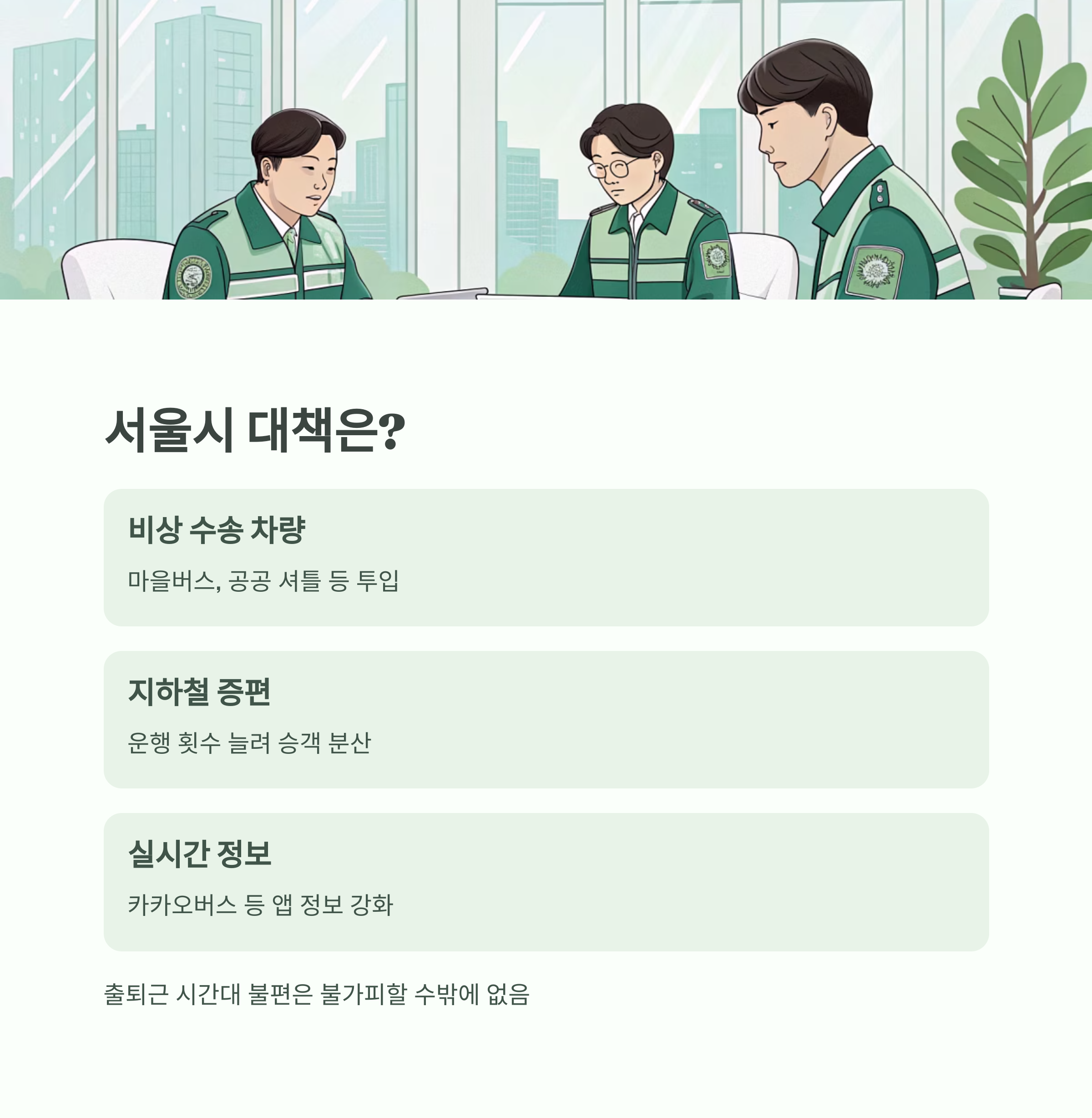 서울시는 파업 발생 시 다음과 같은 대책을 준비하고 있습니다.