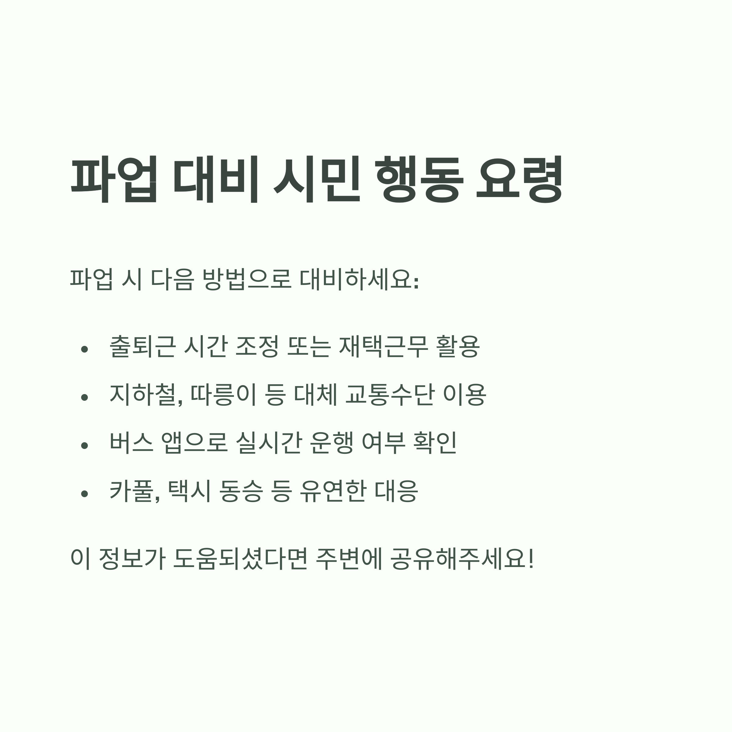 파업 시 대중교통 이용 팁과 시민 행동 요령