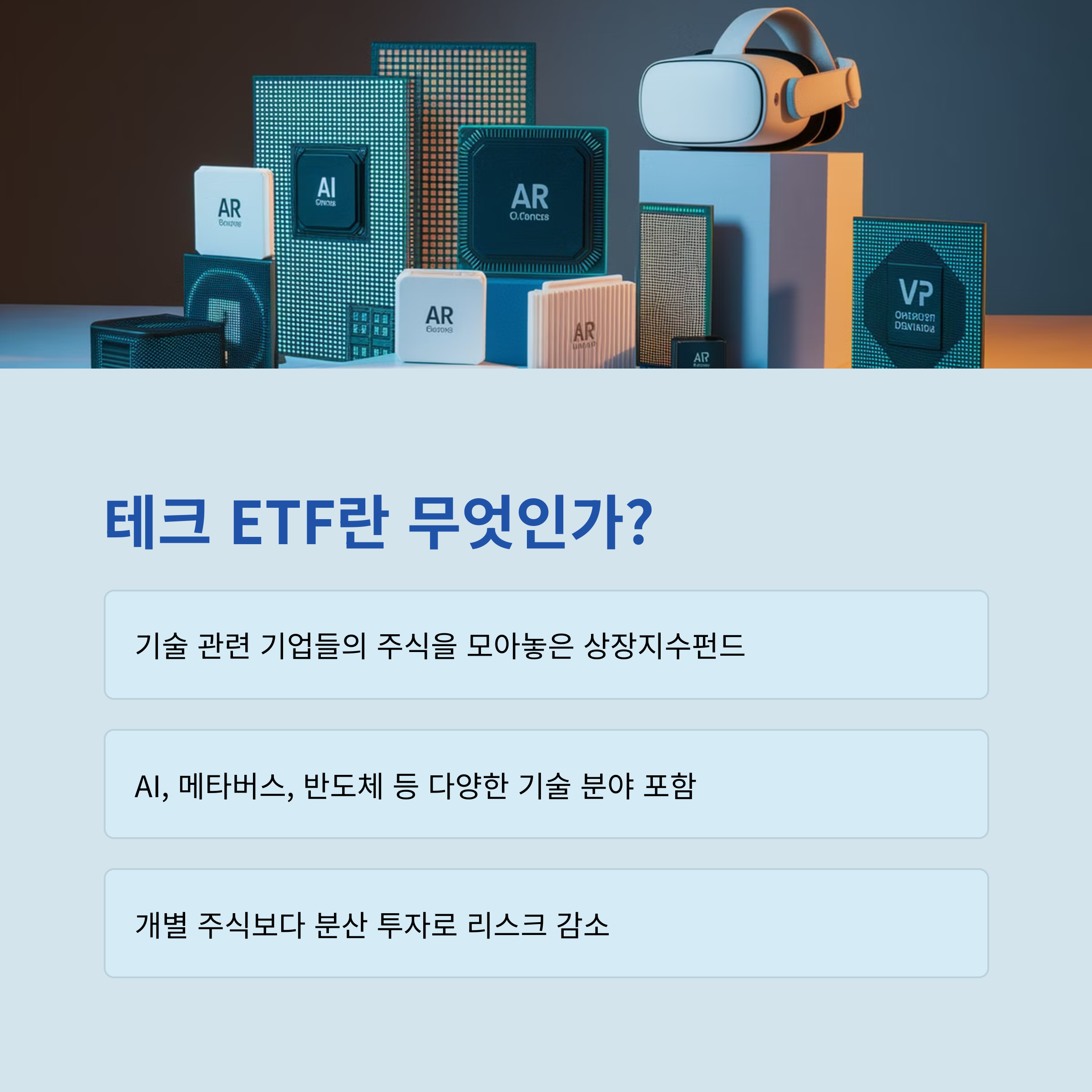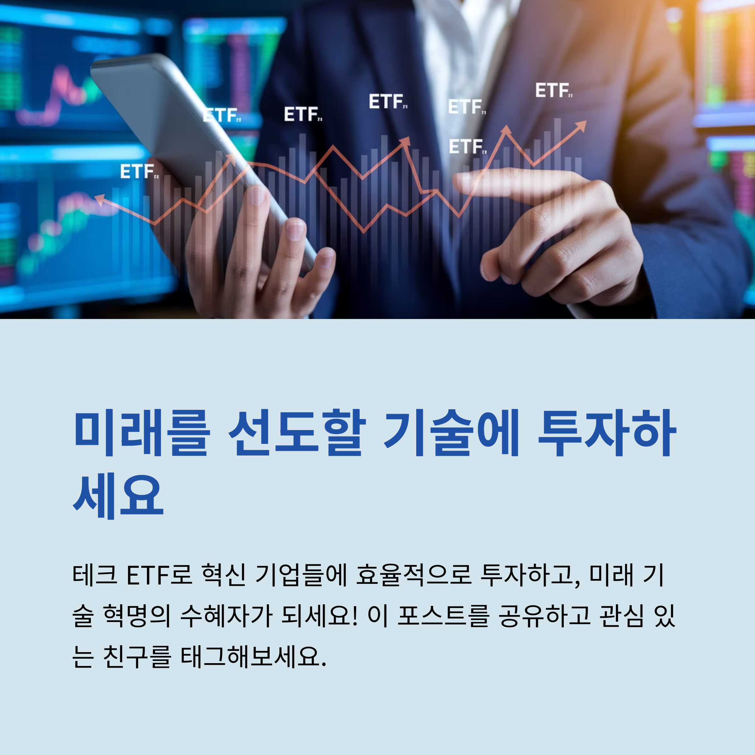 테크 ETF는 장기적인 성장 가능성이 높은 투자 상품으로, 변동성이 있더라도 장기 보유 시 큰 수익을 기대할 수 있습니다. AI, 메타버스, 반도체 등의 분야는 앞으로 더욱 발전할 것이며, 이를 반영한 ETF 투자 전략을 잘 세우는 것이 중요합니다. 현명한 선택을 통해 보다 안정적이고 성공적인 투자를 이루시길 바랍니다!